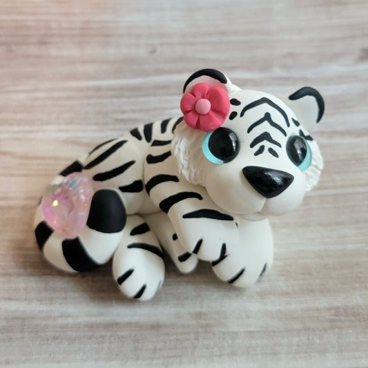 Heart Crystal Tiger “Rose”, Handmade Clay Tiger