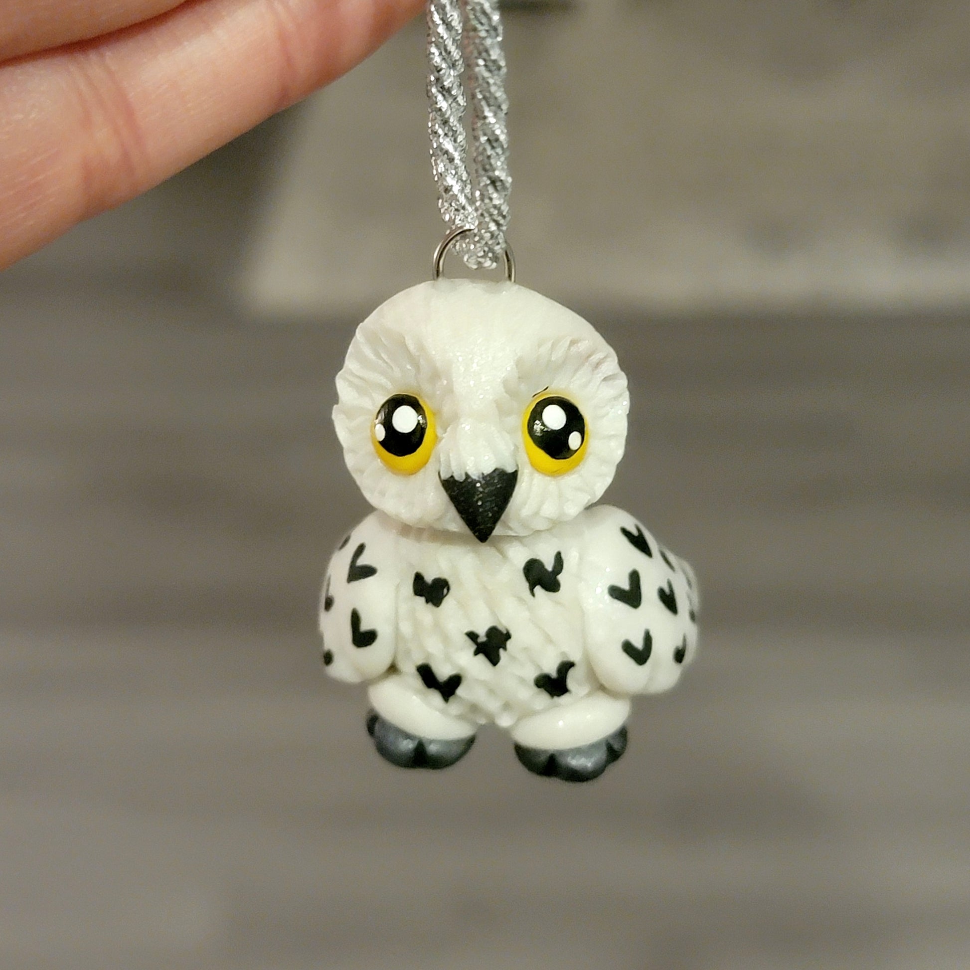 This adorable snowy owl was handmade out of polymer clay and painted